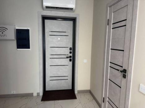 Особенности: Железная дверь, Межкомнатные двери, Натяжной потолок, Софиты, Тёплый пол, Стены выровнены, Ламинат