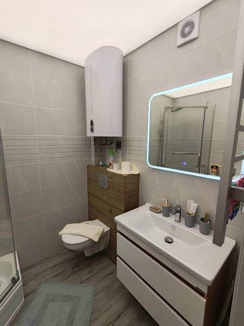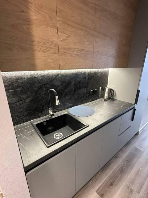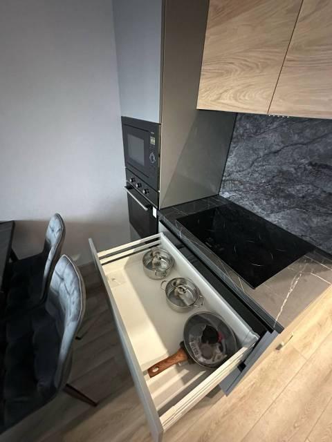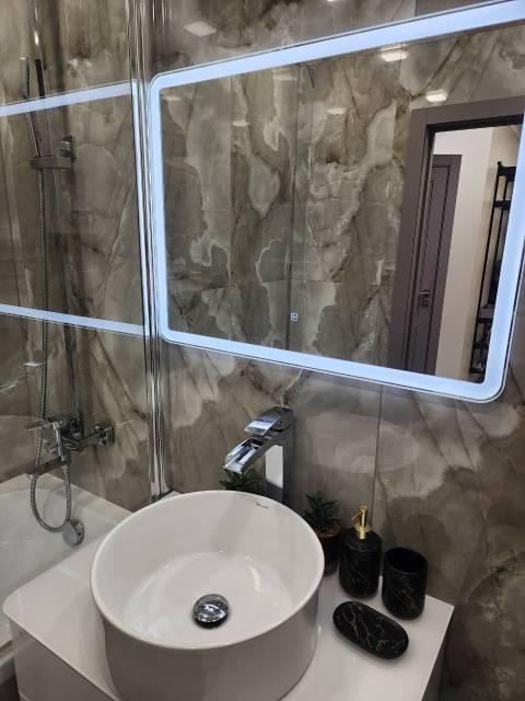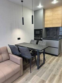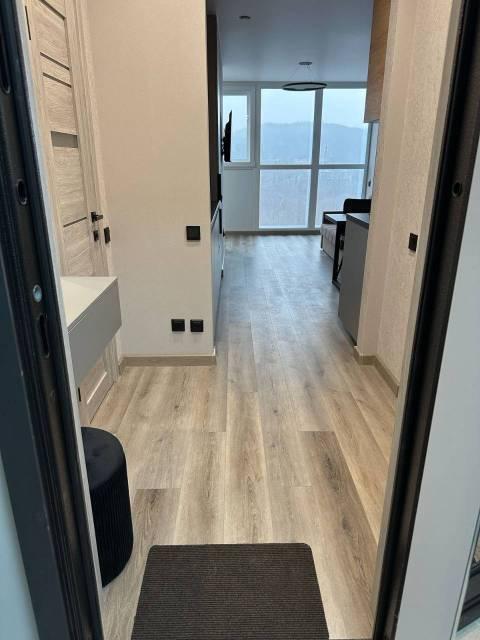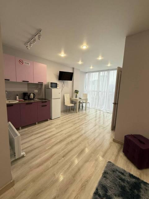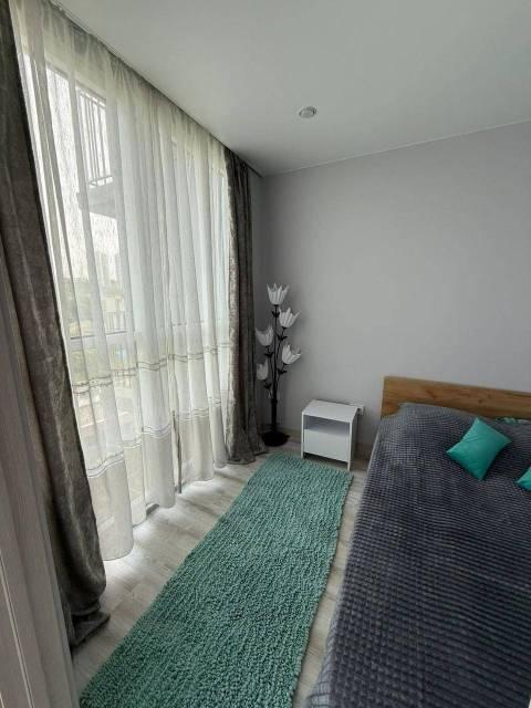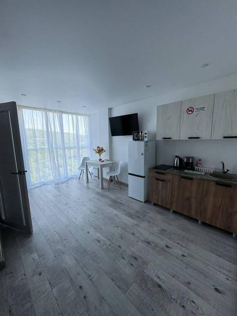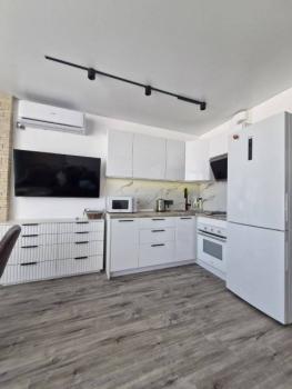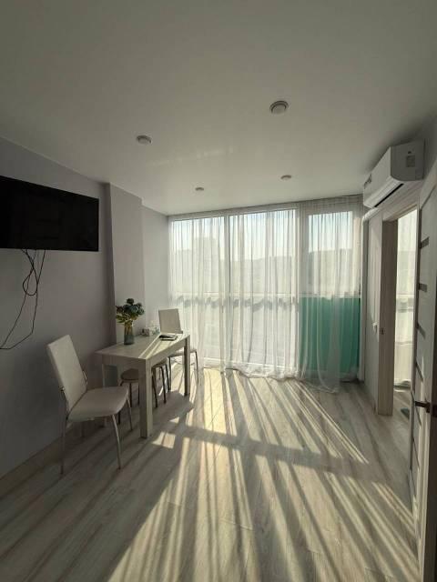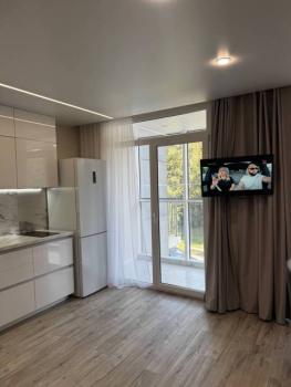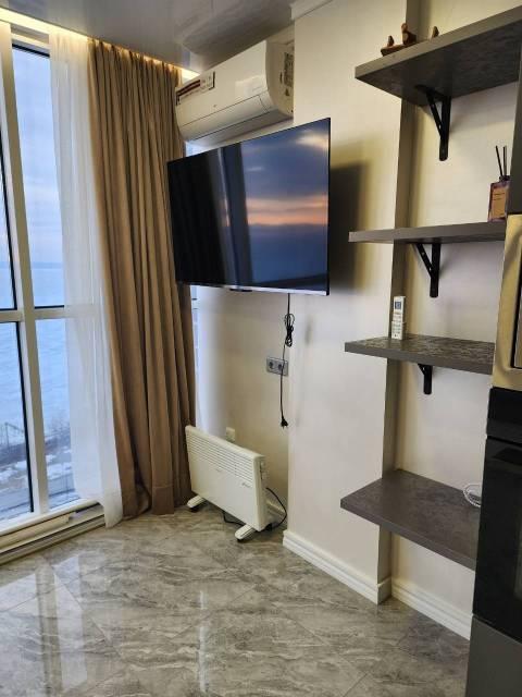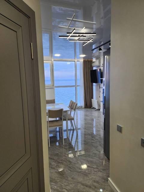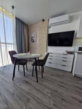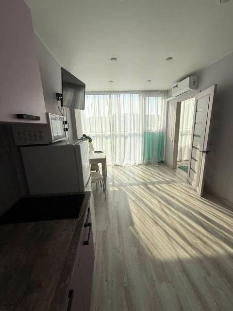 Особенности: Студия находится на центральном проспекте и в курортной зоне. В квартире выполнен дизайнерский ремонт. С балконом 22 кв. Всё новое, кварцвиниловый теплый пол, красивые двери, натяжной потолок, витражные окна, красивая сантехника, гигиенический душ, ванные принадлежности.