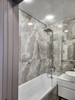 Особенности: Тёплый пол, Софиты, Натяжной потолок