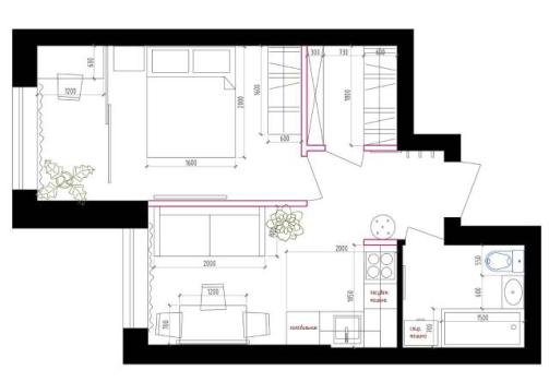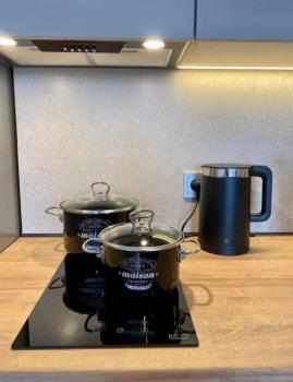 Техника: Вытяжка, Кондиционер, Микроволновая печь, Чайник, Холодильник, Телевизор, Водонагреватель, Стиральная машина, Посудомоечная машина, Полотенцесушитель, Плита, Стеклокерамическая плита