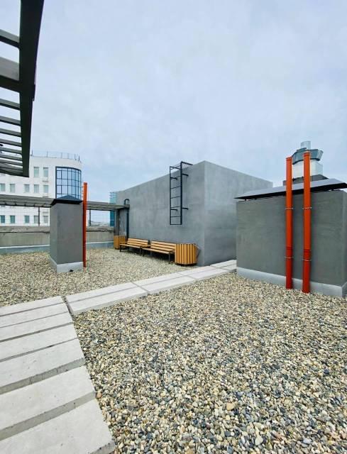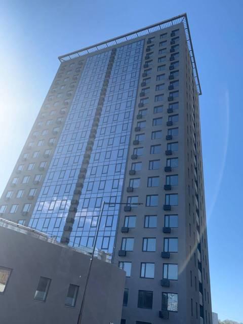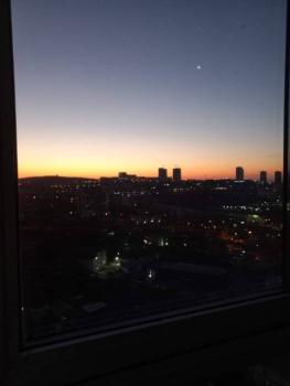 Красивого вида из окна нет, вид на рядом стоящее здание, но у проживающих есть доступ на видовую площадку крыши дома. С нее вид прекрасный!