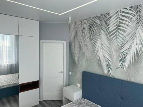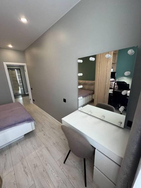 Особенности: Железная дверь, Гардеробная, Ламинат, Межкомнатные двери, Натяжной потолок, Пластиковые окна, Софиты, Тёплый пол, Прикроватные лампы