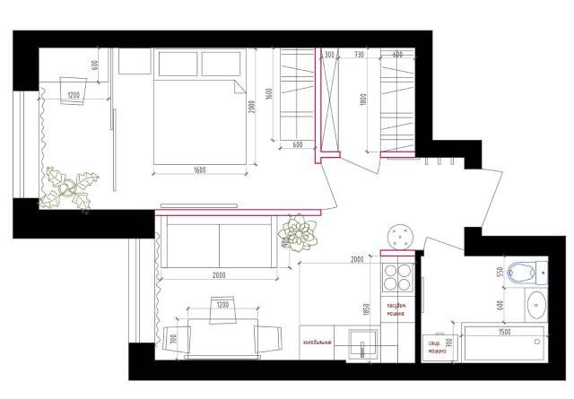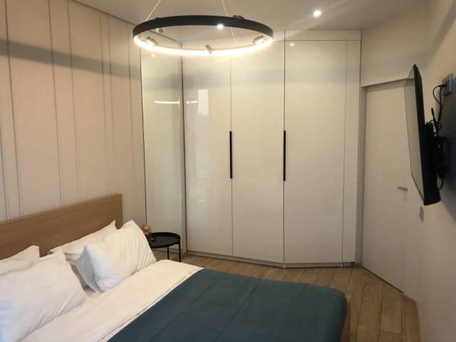 Мебель: Двуспальная кровать, Кухонный гарнитур, Обеденный стол, Шкаф-купе, Гардеробная
