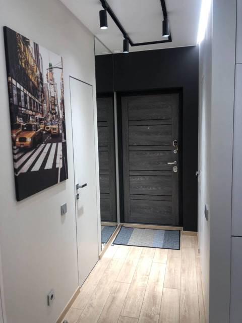 Особенности: Гардеробная, Железная дверь, Ламинат, Межкомнатные двери, Натяжной потолок, Пластиковые окна, Софиты, Стены выровнены, Тёплый пол