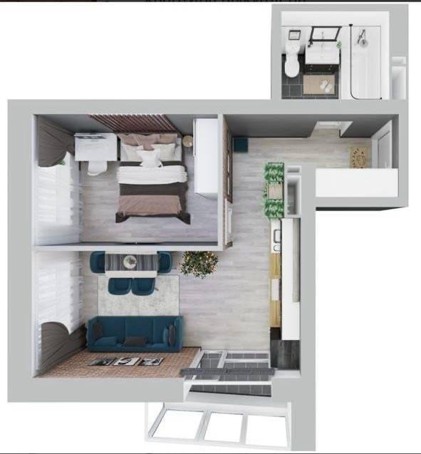 Мебель: Двуспальная кровать, Диван, Кухонный гарнитур, Обеденный стол,, Шкаф-купе
