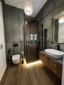 Особенности: Посудомоечная машина, Стиральная машина с сушкой, Железная дверь, Натяжной потолок, Паркет, Пластиковые окна, Стены выровнены, Тёплый пол, Межкомнатные двери, Софиты