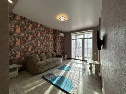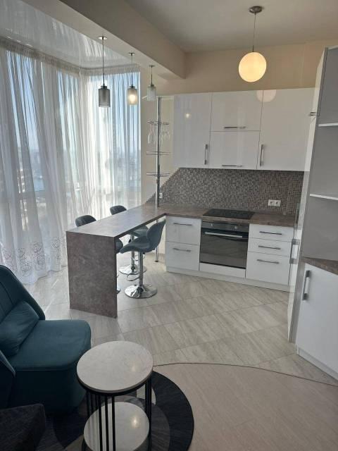 Дом новый, находится в Центре города. Изолированная детская площадка. В доме есть охрана. Квартира уютная, светлая с изумительным видом на город и море. В квартире есть все, что необходимо для проживания: мебель, техника. Заезд с 1 октября 2025г.