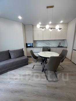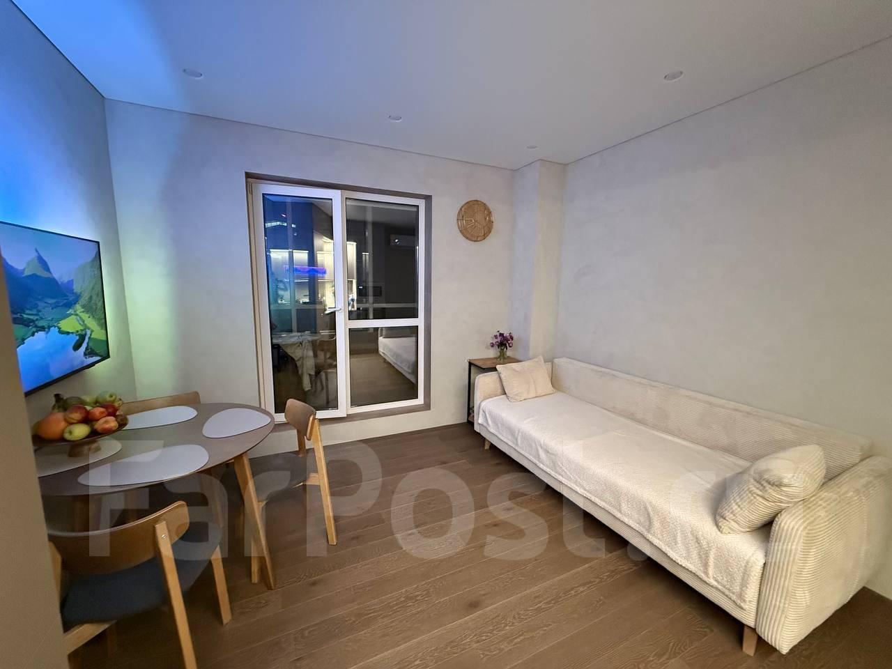 Особенности: Квартира сдается впервые поле капитального ремонта. Сторона расположения Северо-Запад (солнечная с видом на Амурский Залив), шума от центральной дороги нет. В квартире все новое. Отопление электрическое (конвекторы) + теплый пол в санузле. Общая площадь с балконом 50м2.