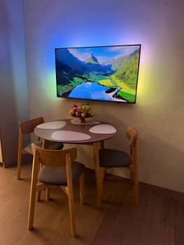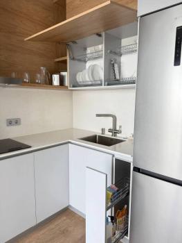 Техника: Вытяжка, Кондиционер, Микроволновая печь, Посудомоечная машина, Стеклокерамическая плита, Стиральная машина, Титан (80л), Телевизор (55 SmartTV), Холодильник, Чайник, Встроенный фильтр для питьевой воды, Утюг/доска.