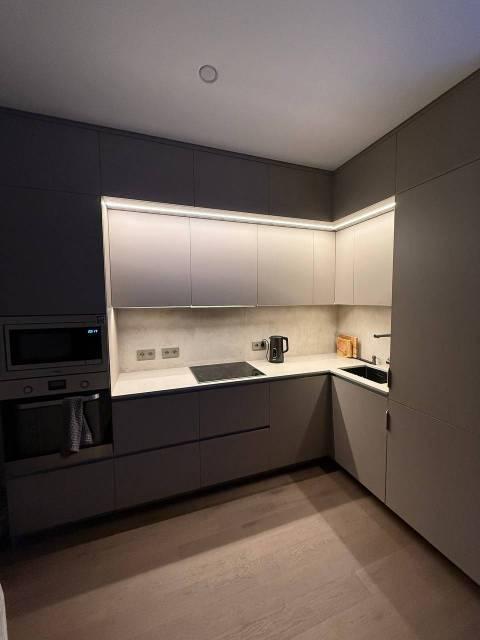 Квартира делалась не под сдачу, а для себя. Дорогая встроенная мебель, хорошая техника. Все стены в декоративной штукатурке. Теневой натяжной потолок. Двери массив дуба 2.3м, на полу паркет натуральный ясень с пробковым компенсатором, две гардеробные системы с подсветками, испанский керамогранит, хорошая сантехника, фильтр для воды входящий в квартиру и дополнительный питьевой.
