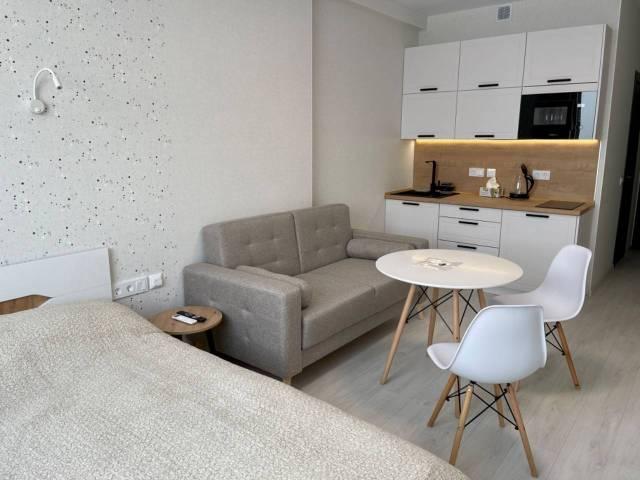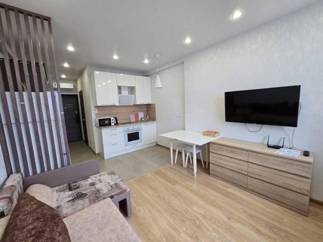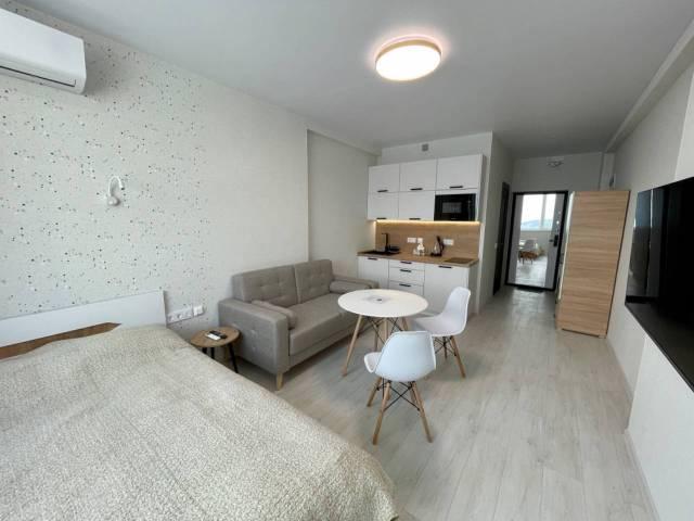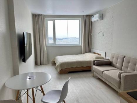 Сдается в среднесрочную аренду уютная современная студия с видом на море и мосты. В квартире есть все необходимое для комфортного проживания.