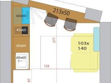 2 полноценные комнаты: кухня-гостиная и зал-спальня.