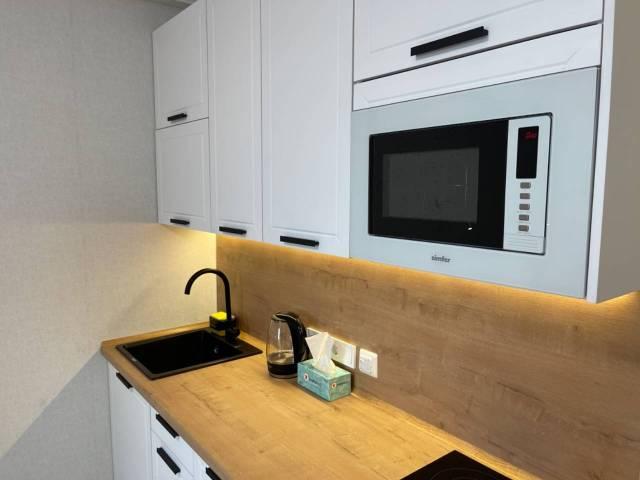 Внутри — приятный современный интерьер, много света и всё, что нужно для удобного проживания. Есть быстрый интернет, кабельное ТВ и все базовые удобства.