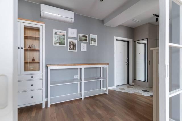 Особенности: Железная дверь, Ламинат, Межкомнатные двери, Натяжной потолок, Отдельный вход, Пластиковые окна, Софиты, Тёплый пол, Стены выровнены