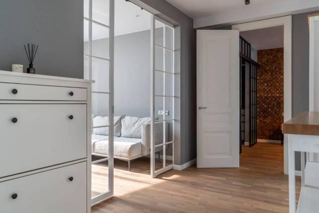 Особенности: Железная дверь, Ламинат, Межкомнатные двери, Натяжной потолок, Паркет, Пластиковые окна, Софиты, Стены выровнены, Тёплый пол