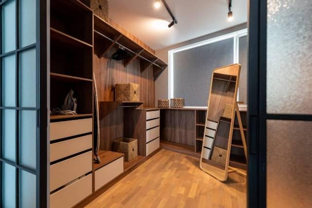 Особенности: Гардеробная, Железная дверь, Пластиковые окна, Натяжной потолок, Паркет, Софиты, Стены выровнены, Тёплый пол