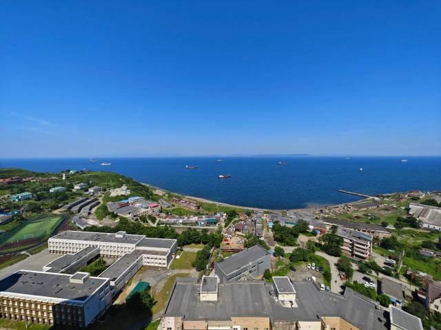 Квартира находится на верхнем этаже 25-этажного дома в зелёном и морском районе города — Эгершельде. Здесь вас ждут потрясающие виды на море и знаменитые владивостокские мосты.
