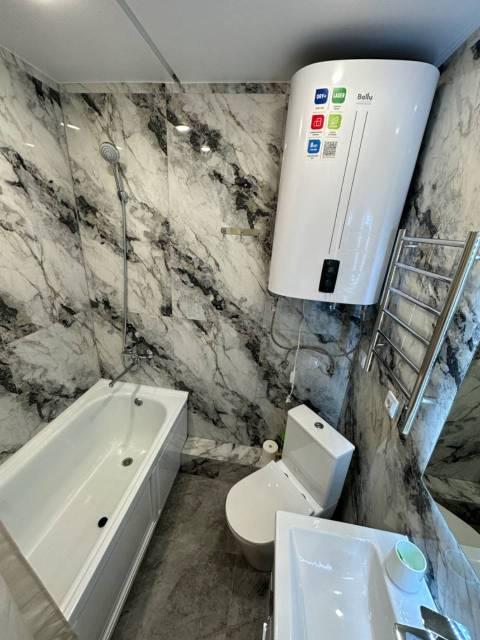 Квартира с современным качественным ремонтом в светлых тонах, с большими окнами из которых можно любоваться прекрасным видом на море. Изолированная спальня и просторная кухня-гостиная. Просторный сан.узел с ванной и тропическим душем, для комфорта предусмотрен теплый пол.