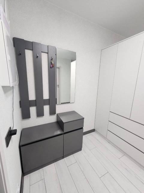 В квартире есть двуспальная кровать с ортопедическим матрасом, вместительный комод и шкаф. Установлена железная дверь, напольное покрытие - плитка ПВХ. В санузле и на балконе - керамогранит с тёплым полом. Установлена система защиты от протечек воды. Натяжной потолок, софиты, люстра с дистанционным управлением, проходной выключатель возле кровати позволяет отключить свет во всей квартире, не вставая. Пластиковые окна на балконе, витраж, стены выровнены.