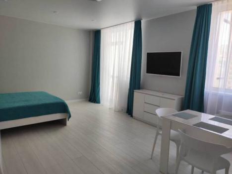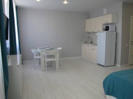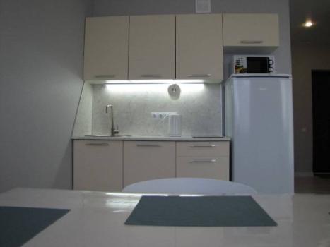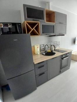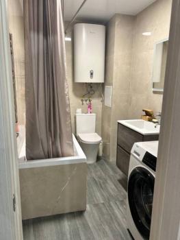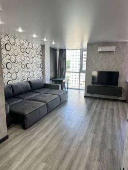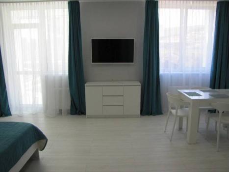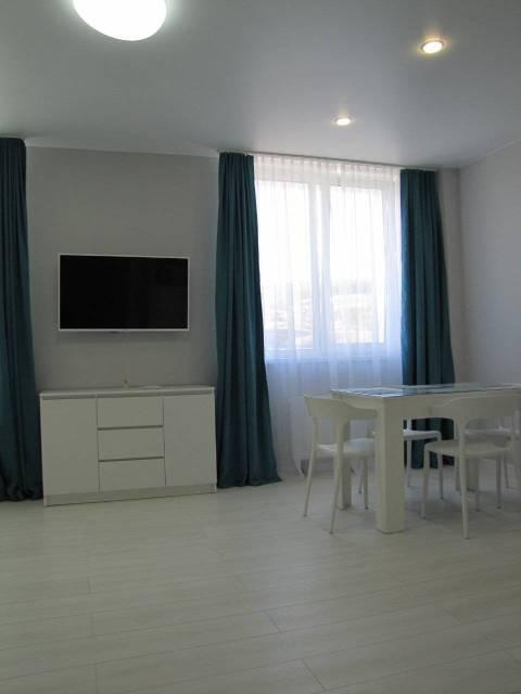 Мебель: Кухонный гарнитур со встроенной техникой (посудомоечная машина, вытяжка, индукционная электроплита, духовка, СВЧ -печь), обеденный столик, тумба под телевизор, перчаточный ящик с зеркалом, ящик для парфюма, две больших двуспальные диван-кровати, встроенный шкаф-купе, стулья.