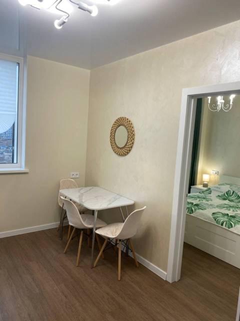 Особенности: Сдается уютная 1-комнатная квартира со всем необходимым для комфортного проживания. Квартира со свежим ремонтом, новой бытовой техникой и мебелью, расположена на территории одного из самых благоустроенных ЖК города. Закрытый двор и охраняемая придомовая территория включают в себя множество благоустроенных локаций. Территория жилого комплекса организована по принципу парковой зоны: с прогулочными и велосипедными дорожками, зонами отдыха,обширной спортивной зоной и множеством детских игровых площадок для всех возрастов.
