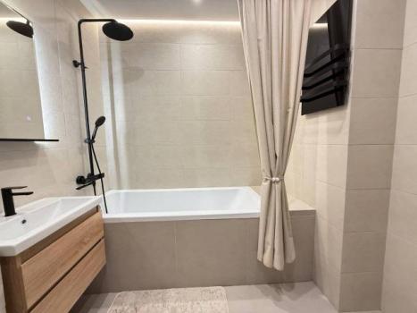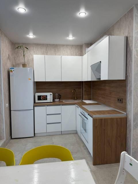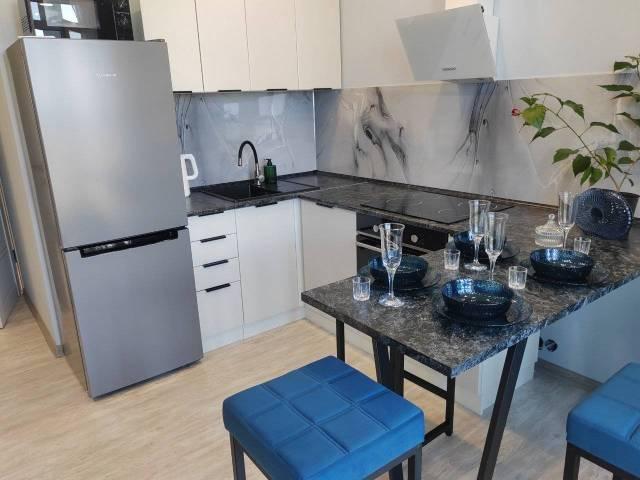 Особенности: Квартира новым ремонтом и прекрасным видом на Русский мост, море и лес! Наслаждайтесь невероятными рассветами и новым ЖК комфорт-класса с развитой инфраструктурой: в есть доме продуктовый магазин, пункты выдачи OZON и Wildberries, закрытые детские и спортивные площадки с баскетбольным полем, эксплуатируемая крыша, охраняемая территория с видеонаблюдением и круглосуточной охраной. До моря и пляжа с кафе — всего 15 минут пешком. Рядом — заправка ННК, супермаркет «Самбери», кофе машина и кафе китайской кухни. Чуть дальше — пятерочка, Реми, Зеленый остров, банкоматы и торговый центр «Калина Молл». На территории есть крытый паркинг, доступный для аренды отдельно.