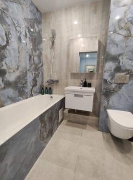 Особенности: Гардеробная, Железная дверь, Ламинат, Межкомнатные двери, Натяжной потолок, Пластиковые окна, Софиты, Стены выровнены, Тёплый пол