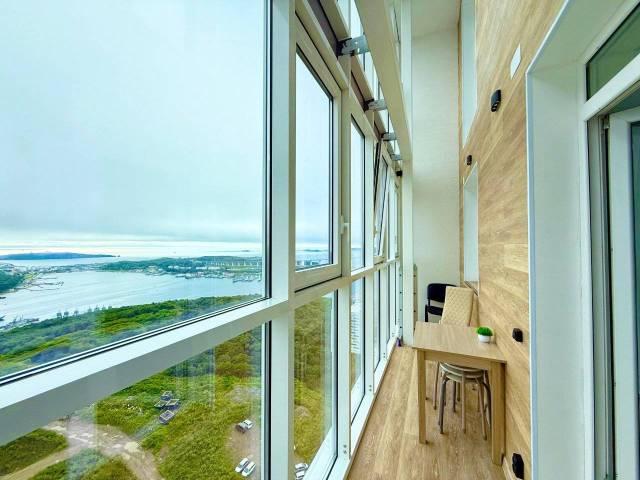 Особенности: Двухуровневый пентхаус с потрясающим панорамным видом на море, мост на остров Русский и город! В доме на первом этаже располагается продуктовый магазин. В пешей доступности прекрасный пляж с кафе. До центра города 12 минут на авто.