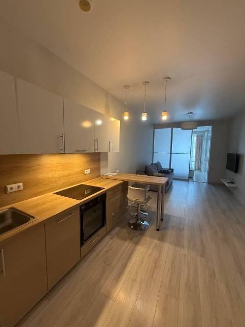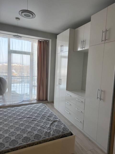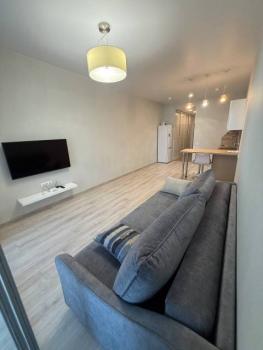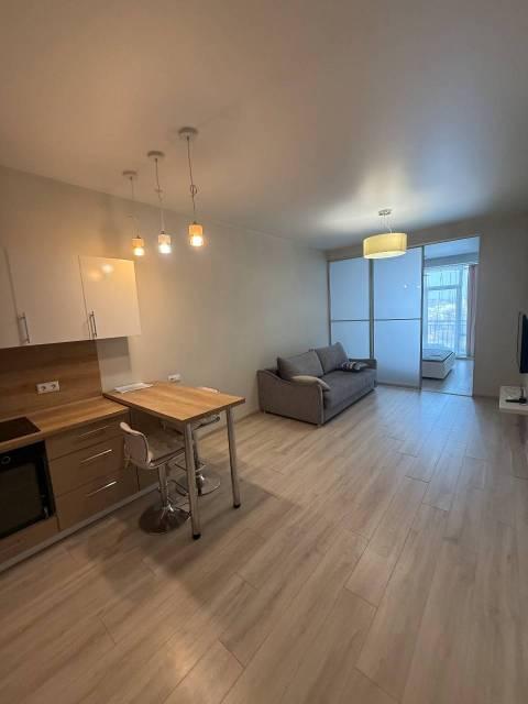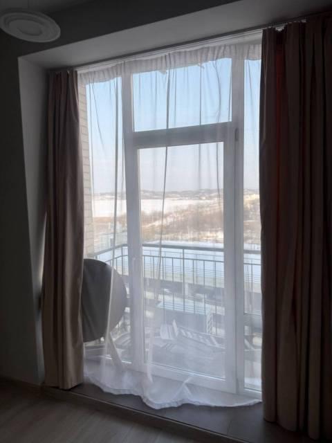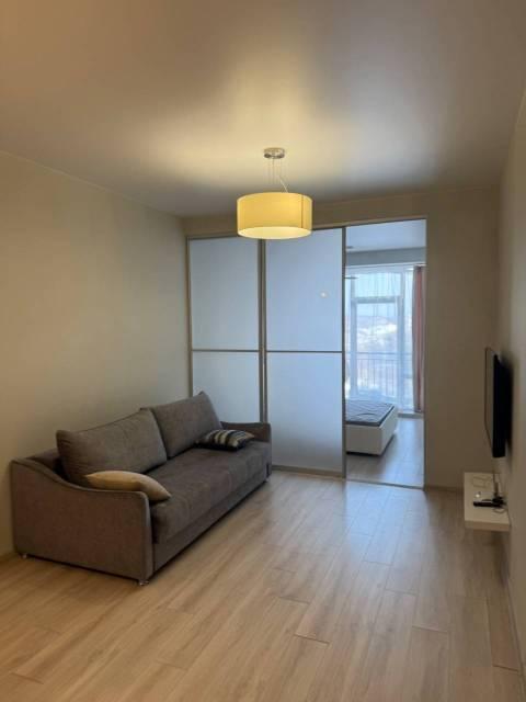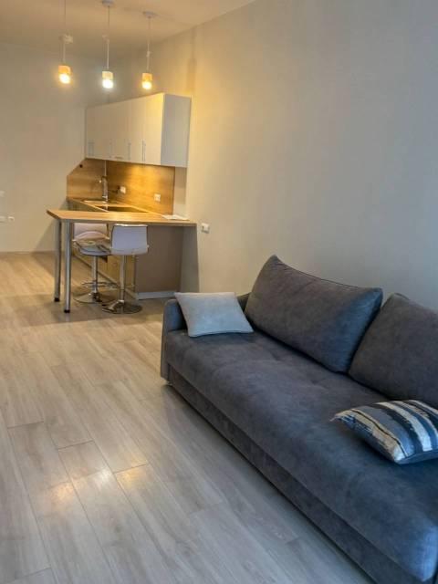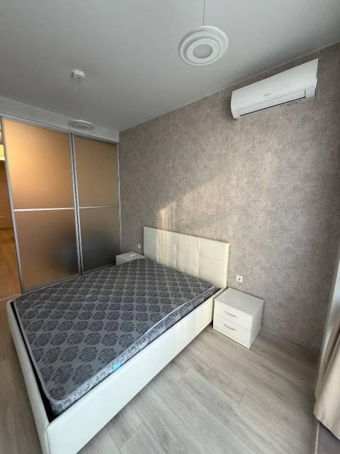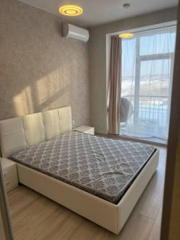 Мебель: Встроенная кухня, барная стойка, барные стульчики, Двуспальная кровать, Диван раскладной, большой Шкаф-купе в прихожей, большой шкаф в спальне. Балкон с столом, стульчиками, видом на море и закат.