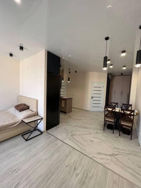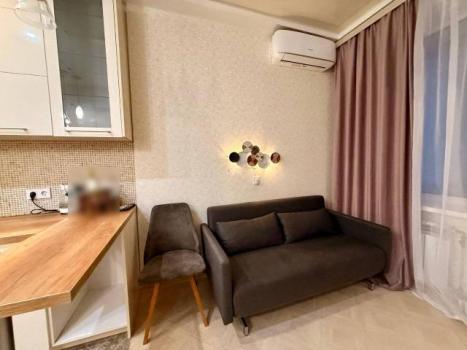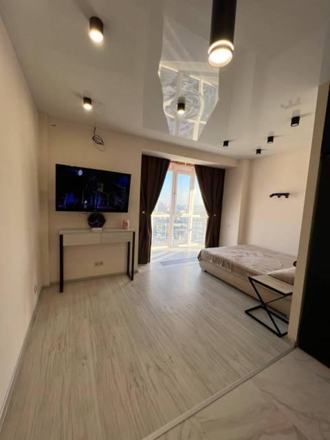 Пространство продумано до мелочей - удобное расположение розеток, много мест для хранения, хороший свет. Планировка квартиры представляет из себя студию с отдельной спальней и балконом с панорамным остеклением, где вечерами можно наслаждаться закатом. Квартира оборудована всем, что может понадобиться.