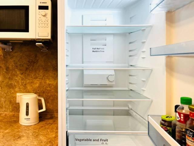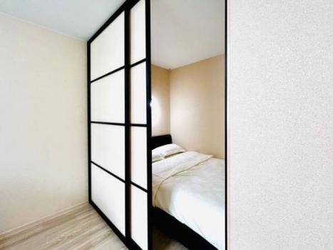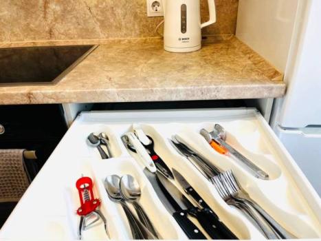 Полноценная кухня, ортопедический матрас на кровати, шторы блэкаут, позволят чувствовать себя, как дома.