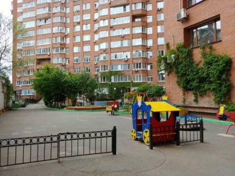 Очень комфортный район для проживания - уютный тихий дворик с детской площадкой и фонтаном.
