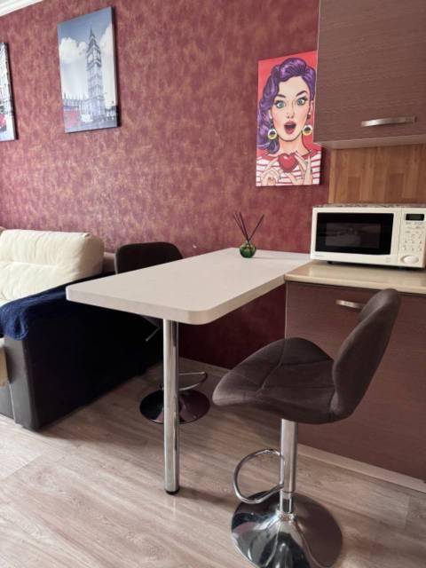 Особенности: Сдается уютная квартира гостиничного типа после косметического ремонта с частично новой мебелью (кресло-кровать, письменный стол, кухонные столы, табуретки); постельное белье, одеяло, подушки, пледы - новые)