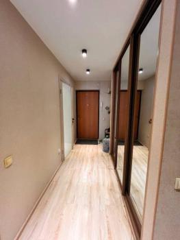 Особенности: Балкон застеклён, Гардеробная, Железная дверь, Ламинат, Межкомнатные двери, Натяжной потолок, Пластиковые окна, Софиты, Тёплый пол везде, включая лоджию. В прихожей и кухне - керамогранит.,