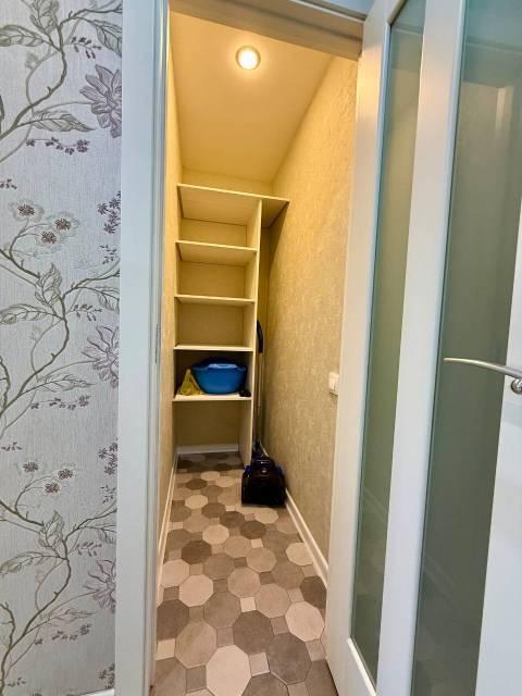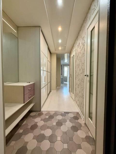 Особенности: Гардеробная, Железная дверь, Ламинат, Межкомнатные двери, Натяжной потолок, Пластиковые окна, Софиты, Стены выровнены, Тёплый пол