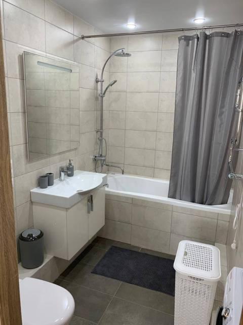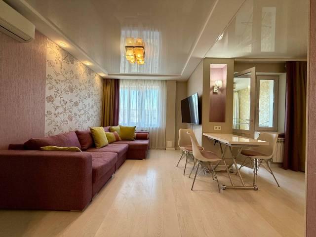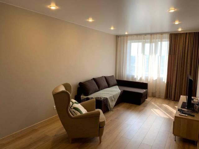 Особенности: Сдам в аренду на длительный срок 2-х комнатную квартиру с современным ремонтом, укомплектована мебелью и бытовой техникой., Гардеробная, Железная дверь, Ламинат, Межкомнатные двери, Натяжной потолок, Пластиковые окна, Софиты, Стены выровнены,Тёплый пол.