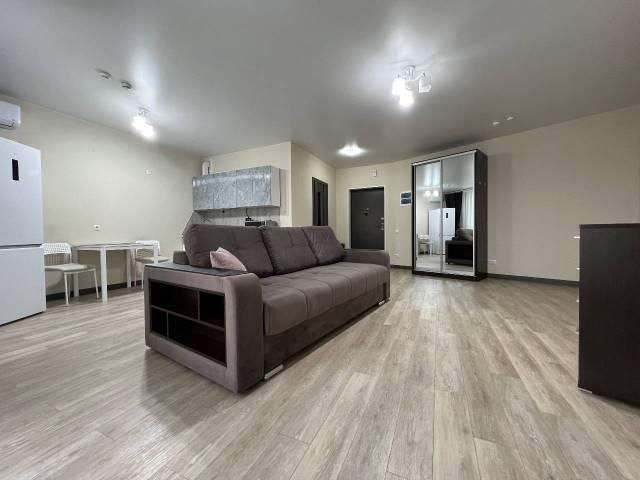 Особенности: Здравствуйте, предлагаю к сдаче уютную студию, квартира почти новая (дом сдан застройщиком 1.5 года назад), очень тихий и красивый район, в шаговой доступности магазины, во дворе дома детские площадки, двор без машин, в доме консьерж ( при необходимости возможно позвонить, чтоб открыли шлагбаум для погрузки-выгрузки вещей, продуктов и т.д), пожарные датчики в квартире с выводом сигнала консьержу и пожарным, домофон с передачей видео-звонка на телефон, квартира имеет почти всю необходимую мебель и бытовую технику, арендатором оплачиваются свет, вода, отопление и интернет.