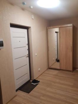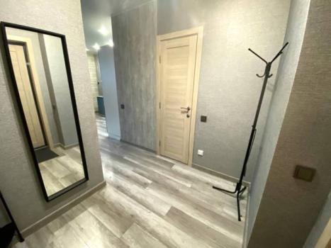 Особенности: Гардеробная, Железная дверь, Ламинат, Межкомнатные двери, Натяжной потолок, Пластиковые окна, Софиты, Стены выровнены, Тёплый пол