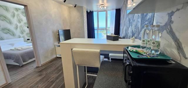 Просторная гостиная-кухня с отдельной спальней. В наличии вся необходимая и абсолютно новая мебель, техника для Вашего безумно комфортного проживания.