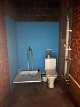 Установлен унитаз, душевой поддон, кухонная мойка и смесители.
