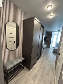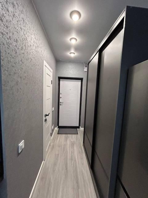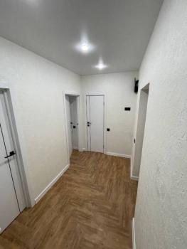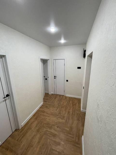 Особенности: Гардеробная, Ламинат, Межкомнатные двери, Натяжной потолок, Пластиковые окна, Софиты, Стены выровнены, Тёплый пол