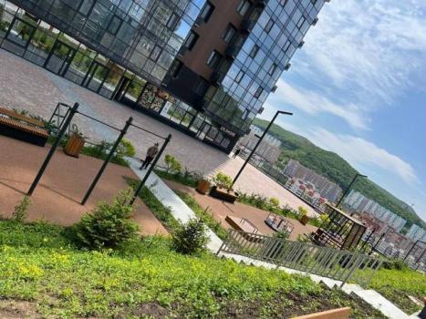 Квартира находится в районе с развитой инфраструктурой, с выездом на трассу Седанка-Патрокл, Русскую, Выселковую (можно комфортно и быстро добраться до любого района города Владивостока и всех достопримечательностей). Большая облагороженная территория ЖК, очень зелено, в зимнее время каток. 7 детских площадок. Много свободных парковочных мест, в ЖК несколько минимаркетов, салоны красоты, барбершопы, WB, OZON, кафе, доставки роллов, пиццы и прачечная.