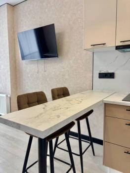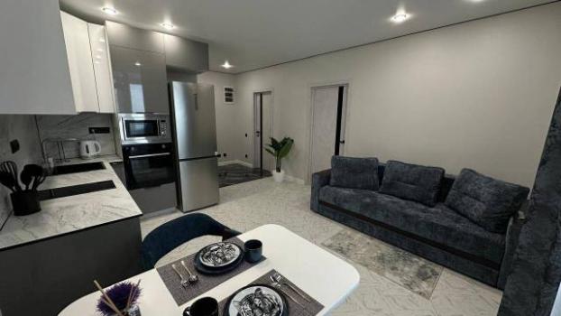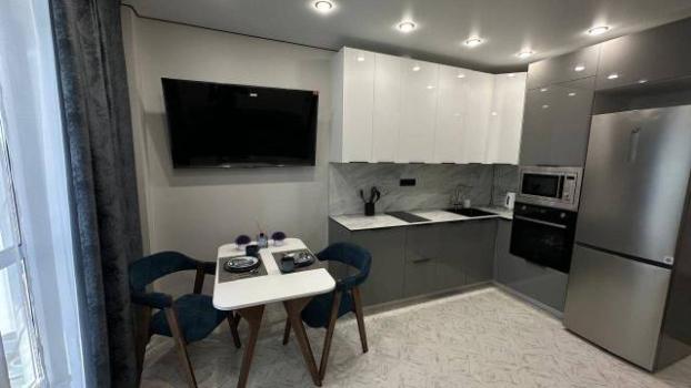 В кухне-гостиной располагается диван-кровать с ортопедическим основанием и телевизор LG Smart TV (Rutube, Кинопоиск, и т.д.).