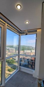 - На балконе был уложен керамогранит, вровень с оконной рамой, т.е там "пирог" из: утеплителя, сетки, ленты по краю и тд. Только потом теплый пол и керамогранит (сколько смотрел объявлений, мало кто так заморачивался). Шланги кондиционера были спрятаны в стене + где окно сделан небольшой аккуратный короб.