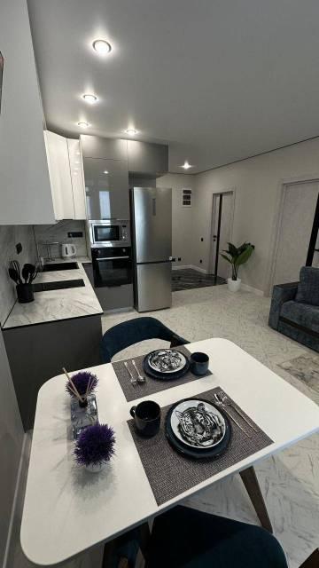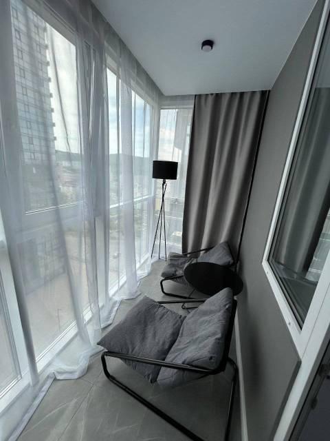 Квартира полностью мебелирована, укомплектована всей необходимой техникой, установлен водонагреватель, теплый пол в с/у и на лоджии.