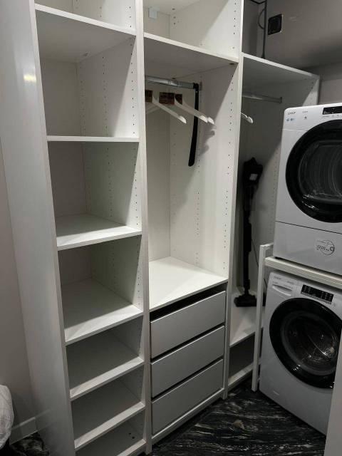 Мебель: Двуспальная кровать, Диван, Кухонный гарнитур, Обеденный стол, Шкаф-купе, Комод, Сушилка для белья, Тумба подвесная