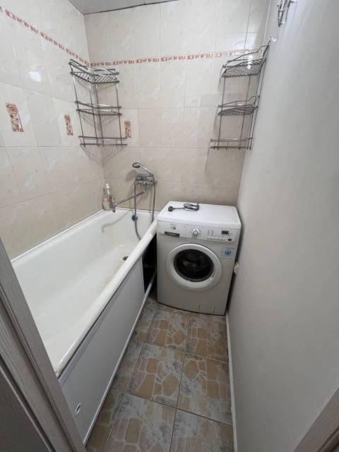 Санузел совмещенный. Есть водонагреватель. Стиральная машина в шкафу в коридоре, на балконе есть сушилка для вещей плюс дополнительная сушилка, которую можно поставить, где угодно.