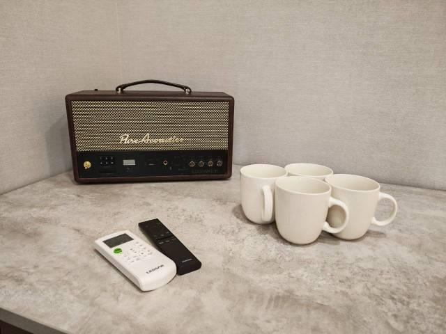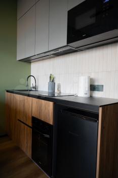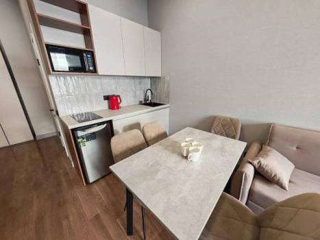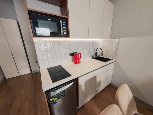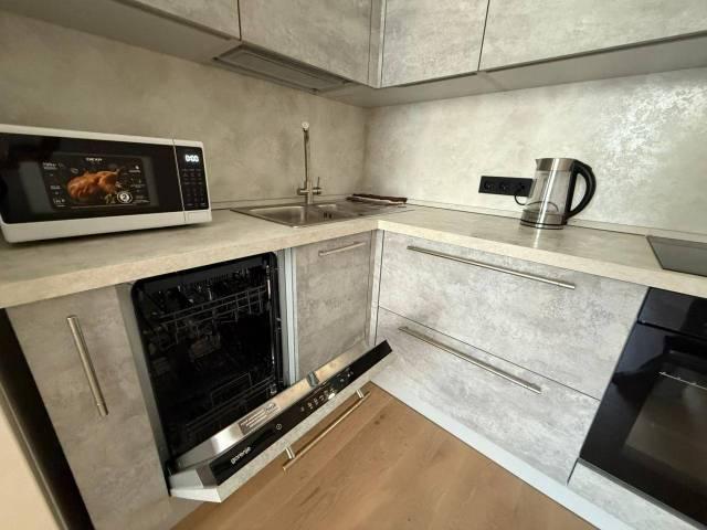 Квартира оснащена всем необходимым для длительного пребывания гостей, в том числе всей посудой, варочной поверхностью, свч и оборудованием для приготовления пищи.