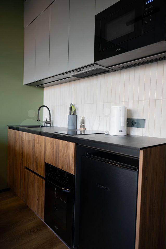 В кухне полный комплект встроенной бытовой техники, измельчитель, фильтр очистки воды.