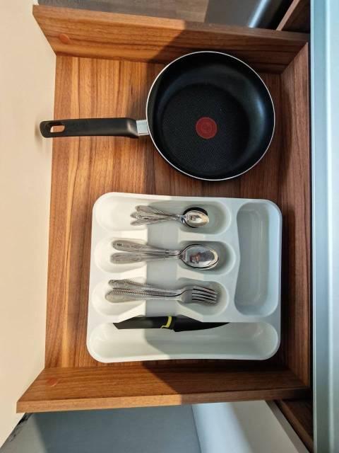 Квартира укомплектована посудой ( набор столовой посуды и приборов ), кухонной утварью для приготовления и инвентарем.